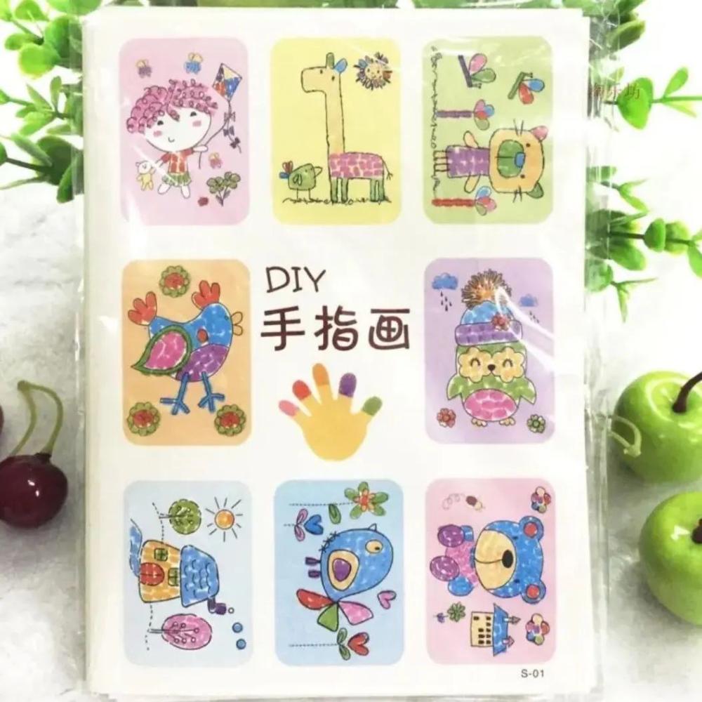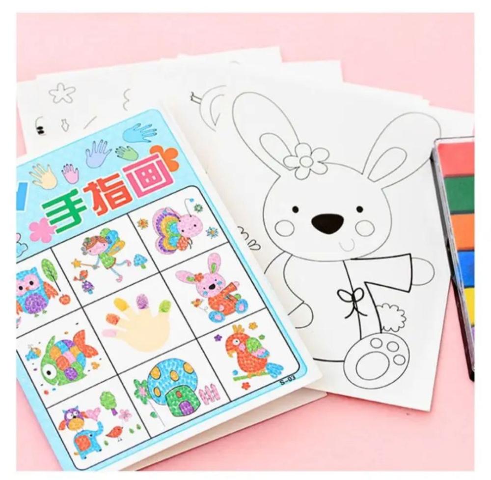 - عدد القطع: 8 كروت تلوين + عبوة ألوان فينجر (4 ألوان أو أكثر حسب التوفر)
