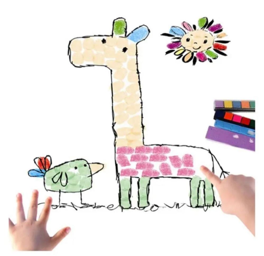 هي مجموعة تحتوي على كروت تلوين وألوان آمنة للاستخدام بالأصابع، تهدف إلى تطوير مهارات الطفل الفنية والحسية.
