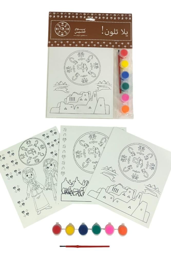 مجموعة مكونة من 3 ألواح تلوين بتصاميم مميزة مستوحاة من الثقافة السعودية، مثالية للاستخدام في المدارس، الفعاليات الوطنية، والاحتفالات العائلية.