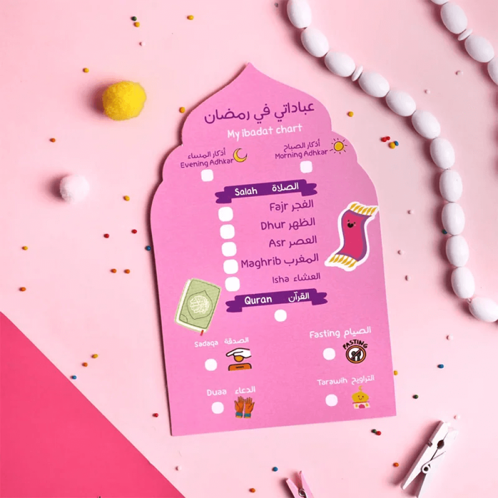 - 6️⃣ جدول عبادات قابل للكتابة والمسح 🕌 – يساعد الطفل على متابعة عباداته اليومية وتشجيعه على الالتزام بها