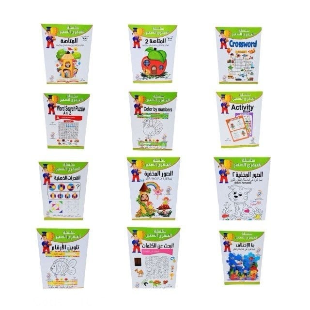 ج: مجموعة من 12 كتابًا تعليميًا مصممة للأطفال من 5 إلى 8 سنوات، تعزز التركيز، الإبداع، والحصيلة اللغوية.